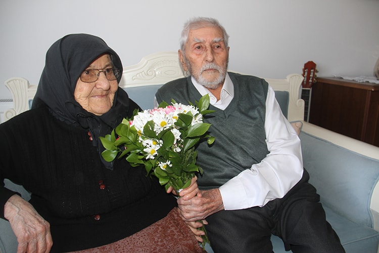 Münevver (95) ile Mehmet Ali Ülvan (99) çifti, 77 yıl önce ailelerinin kararıyla evlendi.
