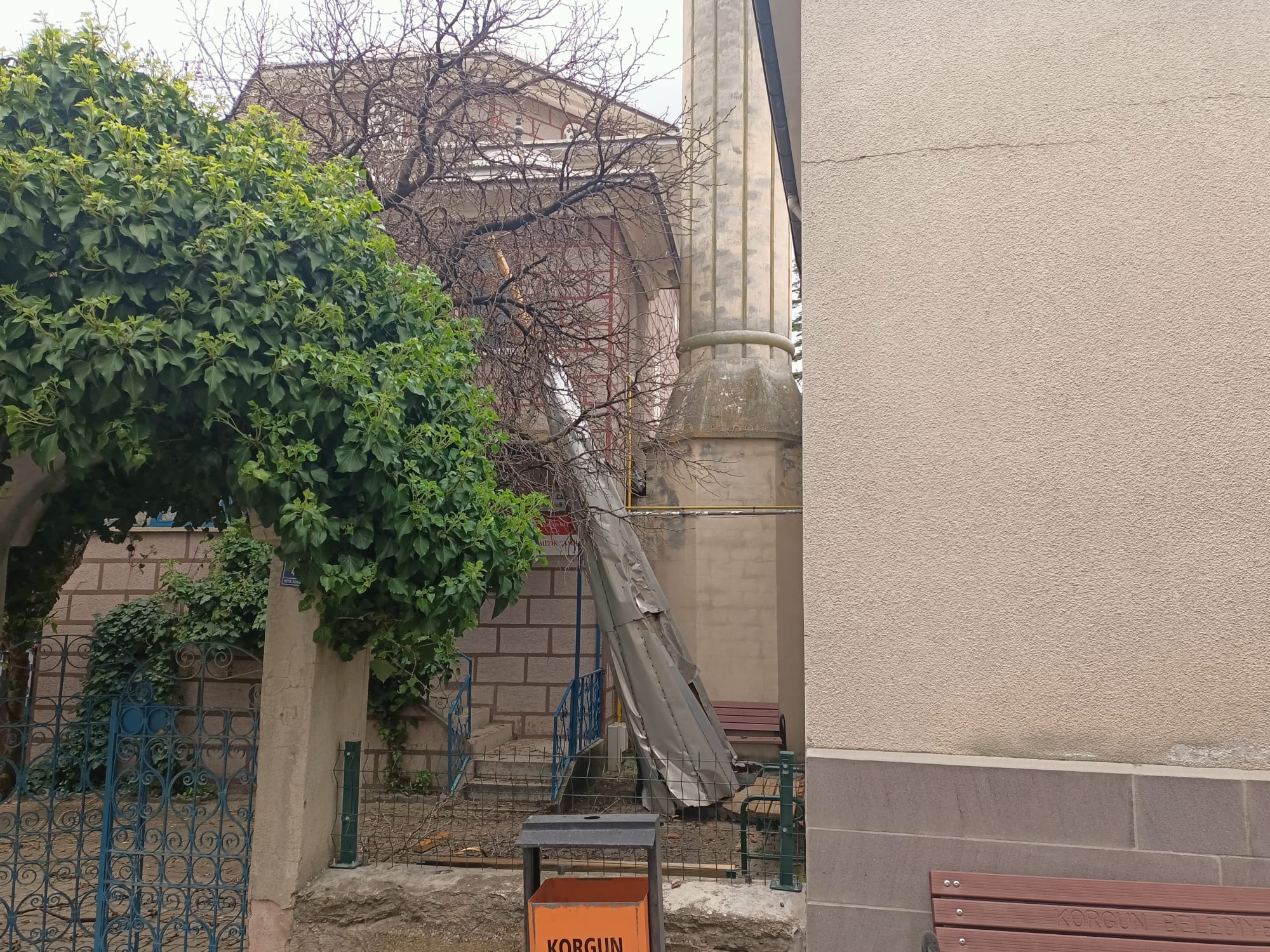 CAMİ MİNARESİNDEN DÜŞEN PARÇADAN KAÇAMADI