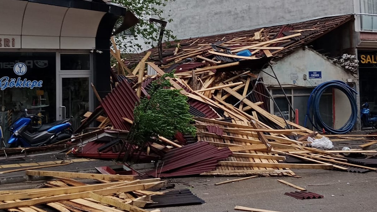 Kastamonu’da kuvvetli rüzgar nedeniyle bazı binaların çatısı uçtu, ağaçlar devrildi.