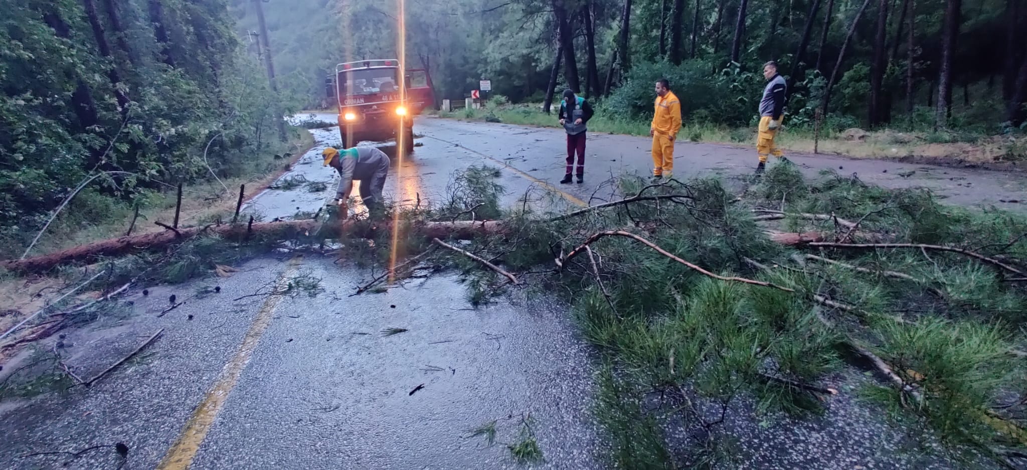Yola devrilen ağaçlar ise ekipler ve vatandaşların yardımıyla kaldırıldı.