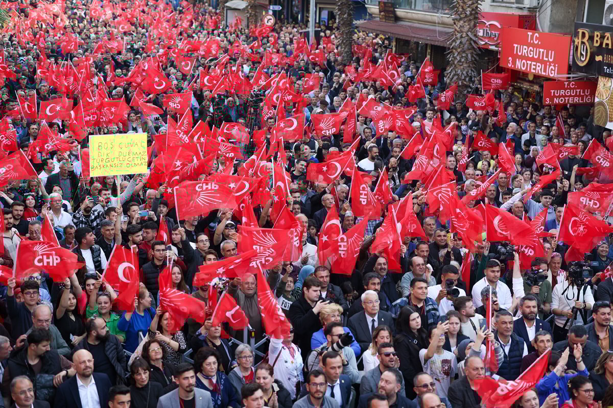 CHP Genel Başkanı Özgür Özel, Manisa Turgutlu’da halk buluşmasında konuştu. Yerel seçim çalışmaları kapsamında Turgutlu Koza Pazar Meydanı’ndaki buluşmaya, CHP Manisa Milletvekili Ahmet Vehbi Bakırlıoğlu, Turgutlu İlçe Başkanı Hasan Ayma, Turgutlu Belediye Başkan Adayı Çetin Akın, Manisa Büyükşehir Belediye Başkan Adayı Ferdi Zeyrek ve çok sayıda partili katıldı.