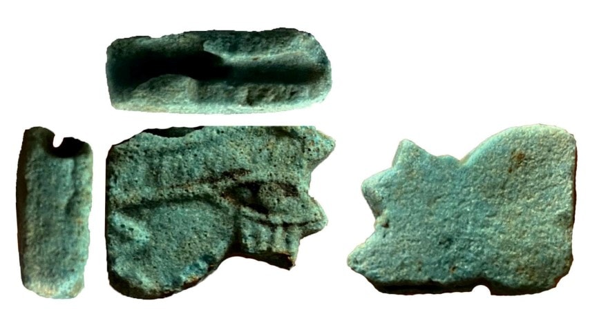 Bir diğer obje kandil parçası. Üzerinde İsis Tapınağı’nın görseli var. 4’üncü obje, bir tuğla parçası. Bunun üzerinde ‘Serapis Hiera’ yazısı var. Anlamı ise ‘Serapis’in kutsal alanı demek. Dolayısıyla bütün bu buluntular üzerinden ‘Burada bir kutsal alan olabilir’ diyoruz. 5’inci obje Ra’nın gözü figürü. Buna ‘Horus’un gözü’ de deniyor. Tek bir tanrı olduğunu ifade eder. Aynı zamanda vicdanın gözüdür. Mısır etkisini gösterir” diye konuştu.
